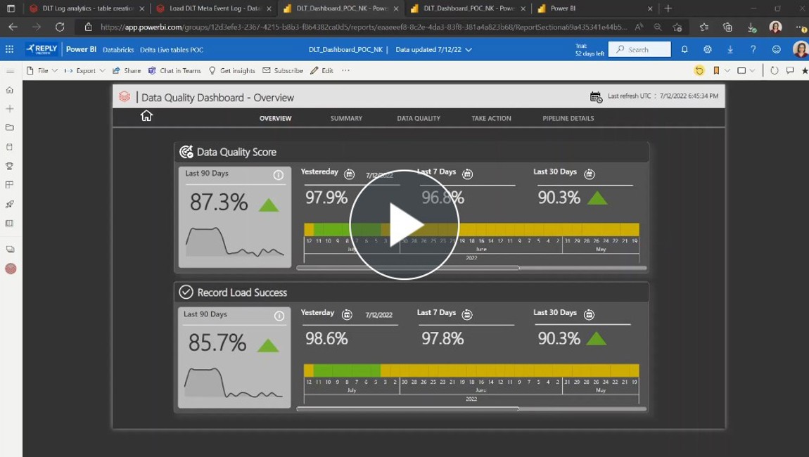 To solve this, our data experts have developed the DLT Data Quality Dashboard. This unique IP allows users with little to no DLT expertise to harvest metadata from DLT Expectations into reporting objects. A simple color-coded performance visualization through a Databricks Dashboard or Power BI Dashboard shows at a glance if data quality or ingestion issues exist, trends over time, and links to jobs for deeper inspection.